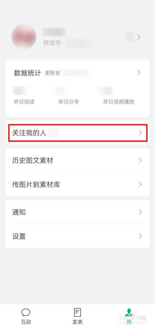 进入订阅号助手我页面,很实用的功能,点击关注我的人;