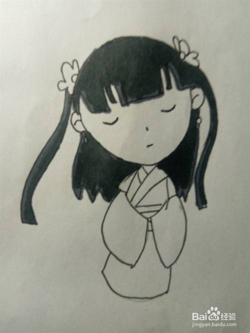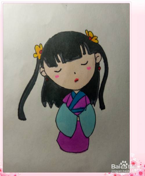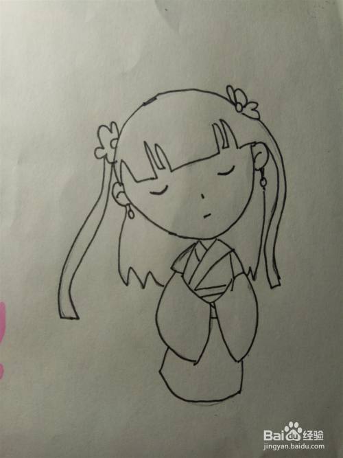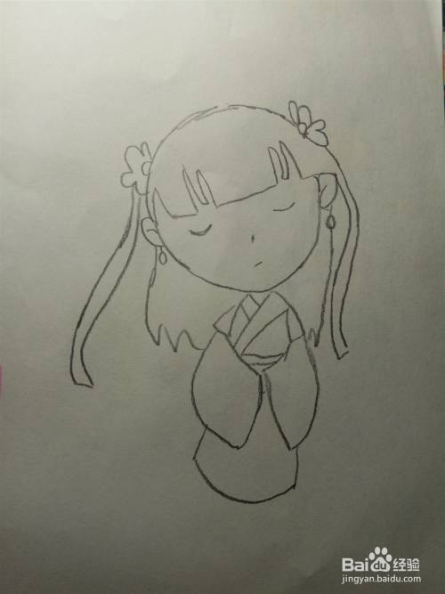 1用铅笔在画纸上慢慢勾画出少女的模样。