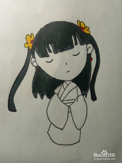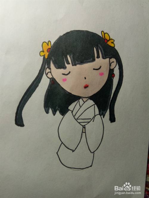 古代少女忧愁模样,着实惹人怜爱。拿起手中的画笔完成一幅这样的简笔画吧!