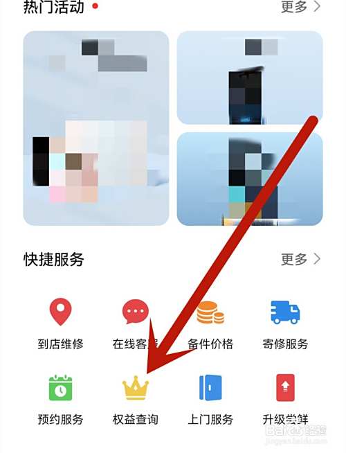 下拉找到【权益查询】。
