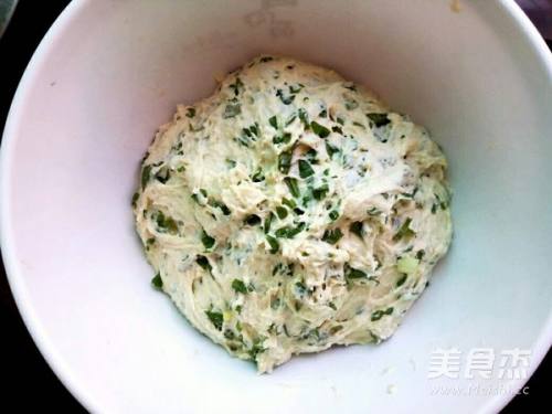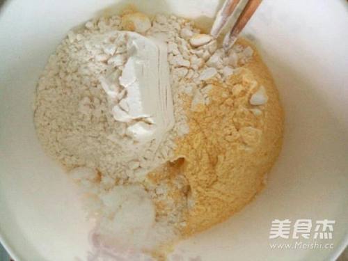 3放入面粉和玉米面,再加入牛奶和成稀点的面团