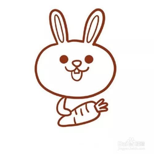 给小兔子加上圆圆的眼睛,稍微的画个小圈再上色,或者是直接画黑色的两个圆即可。
