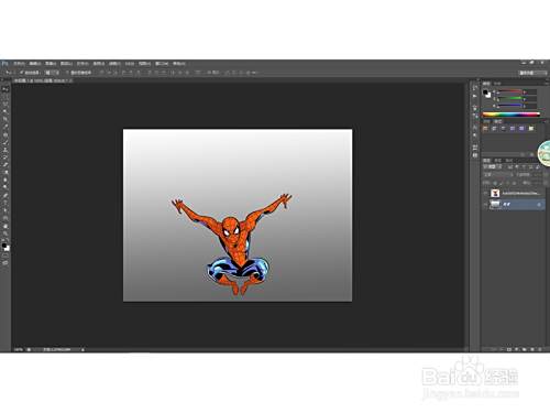 然后选择渐变工具,选择中灰密度渐变色,填充背景图层,得到下图效果: