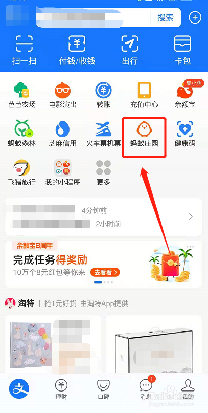 接着我们可以在页面上看下蚂蚁庄园,我们点击进入