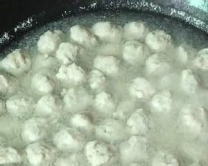 挤成一粒粒鱼丸后,点开始煮,水快开时转小慢慢煮。