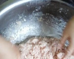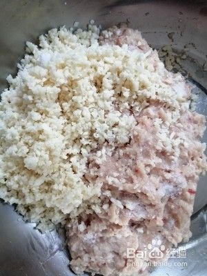 准备一个大盆,将搅好的鱼蓉、荸荠、肥猪肉泥、料酒、盐、糖倒入盆中准备下一步。