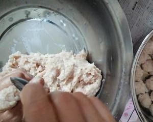 将鱼蓉摔打20分钟,这样可增加鱼丸的粘性,吃起来口感好,鱼丸有弹性?。