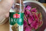 将淹出水分的萝卜淋干,加入两勺白醋。