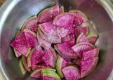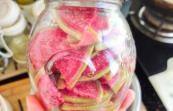 “在早市买了个心里美萝卜,一直忘了吃,今天做一个糖醋腌萝卜。”