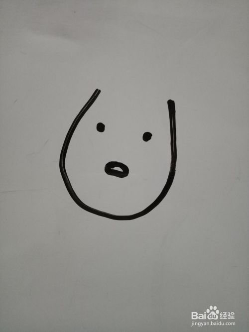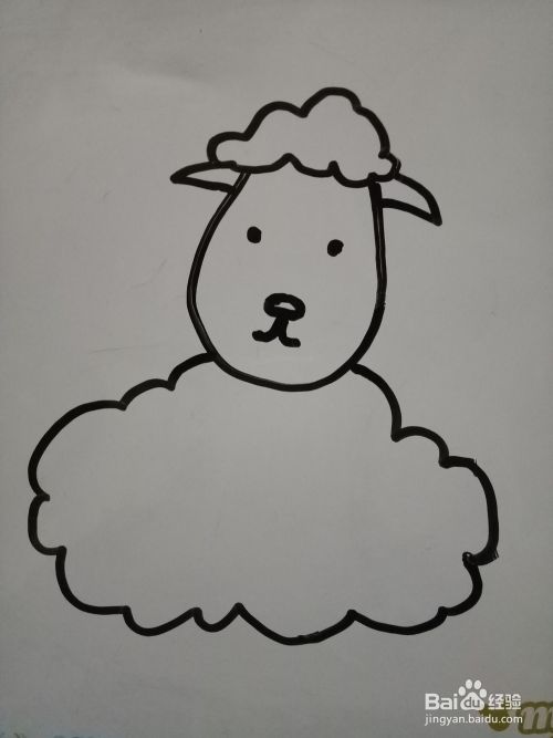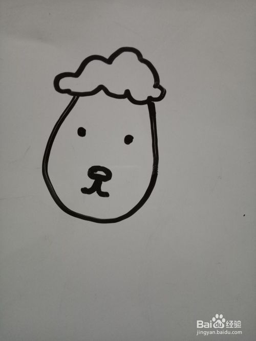 画出小绵羊的头的轮廓,再画上两个小黑点,做小绵羊的眼睛。