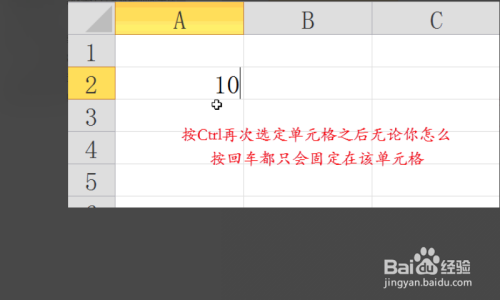 选定要录入的单元格,然后按住Ctrl键再点一下,之后录入数据无论你怎么按回车它都只会选定当前单元格。这个一般只会在测试数据的时候会用到。