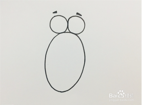 在上方画出两个大眼轮廓后,再在上面画出它的眉毛