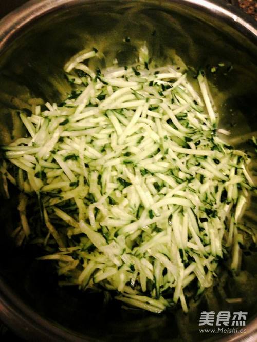 2将黄瓜擦成条儿状,待用。