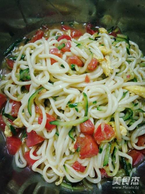 10煮面,过三次凉水后将面倒进拌好的菜里。就可以吃喽!美味!