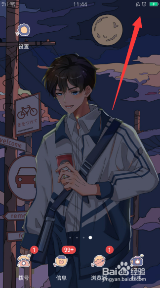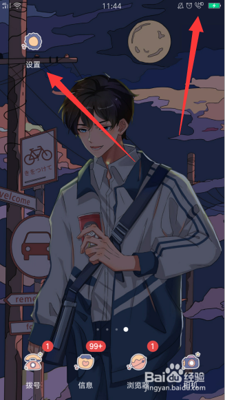 查看手机屏幕右上角,可以看到HD符号,点击桌面【设置】。
