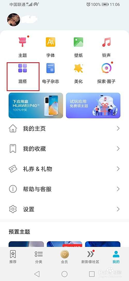 第一步进去华为手机主题之后,在我的界面,点击混搭