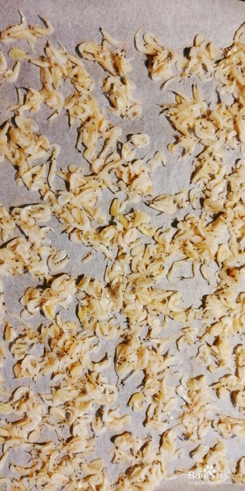 把油纸放在烤盘上,把虾皮放在上面