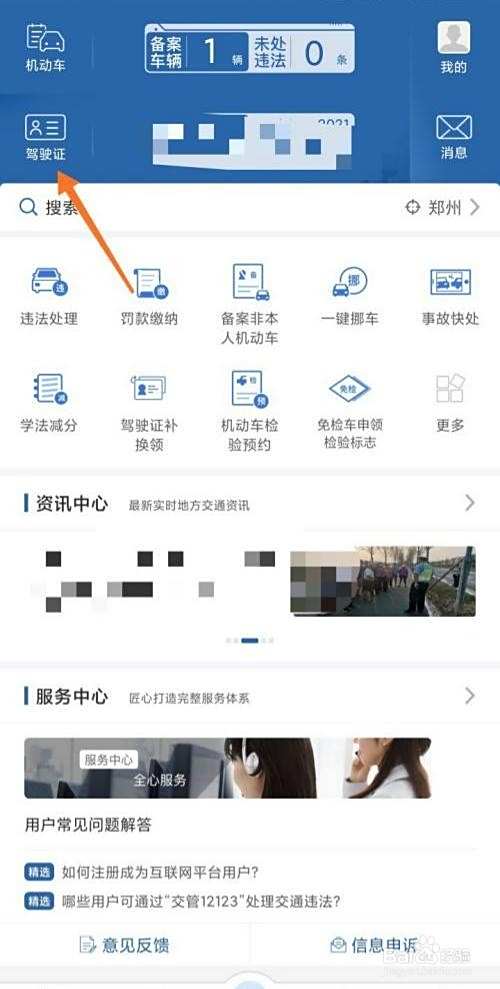 在交管12123中点击【驾驶证】。