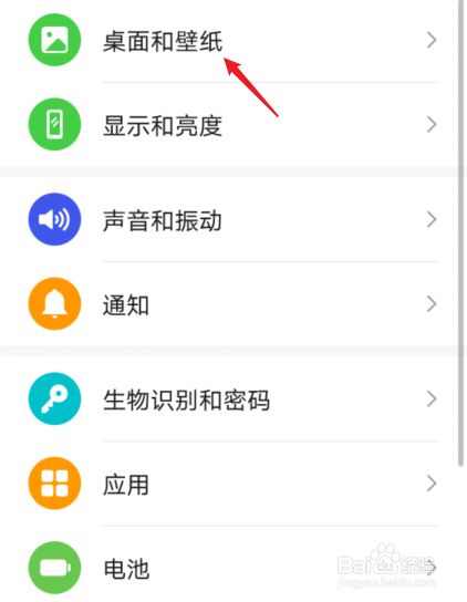 在设置界面,点击桌面和壁纸的选项。