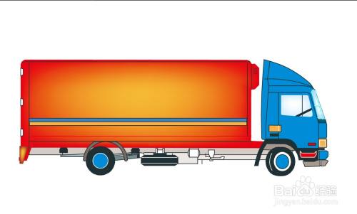 车厢的左侧尾灯使用红黄色的渐变填充,使用网格工具点击车厢让其呈现红橙色的渐变,再点击车窗让其呈现天蓝色的渐变,完成重型卡车图片绘制。