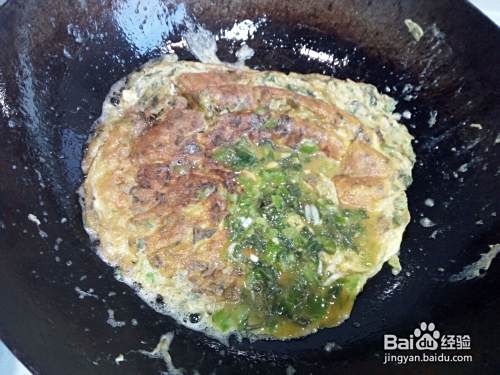 晃动并颠勺翻个(避免铲刀铲破),煎塌另一面,熟后出勺盛盘即可。