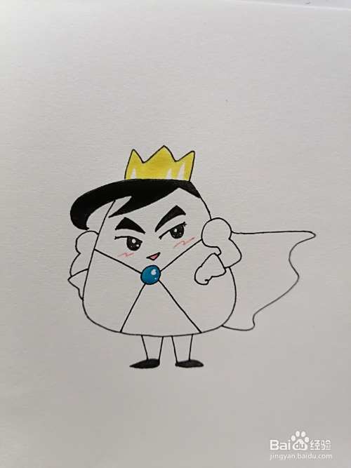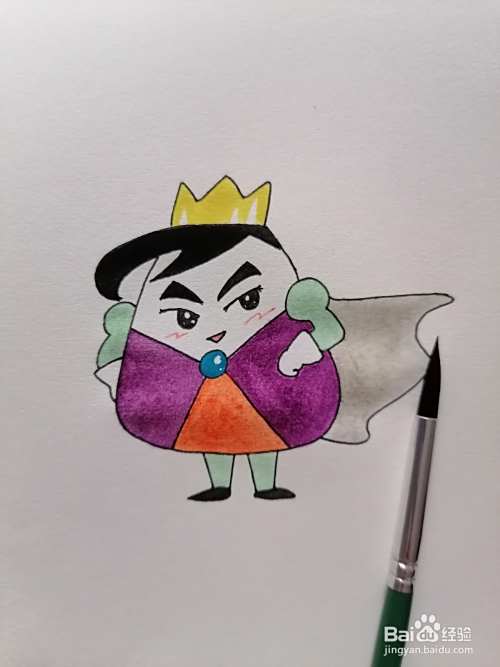 最后用浅绿+白色水彩涂好它的衣袖和裤子,用群青水彩涂好它的披风,古度王子就画好啦