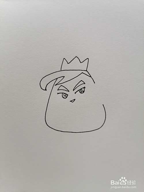 首先在纸上画出古度王子的王冠和长刘海,在它脸上画出眼睛和嘴巴