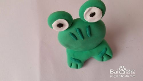 我们在小青蛙的大眼睛里面加上白色的圆形橡皮泥做眼睛