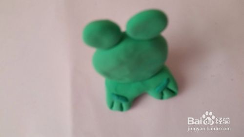 然后我们往下同样用绿色的橡皮泥做出小青蛙的身体还有前面趴着的四肢