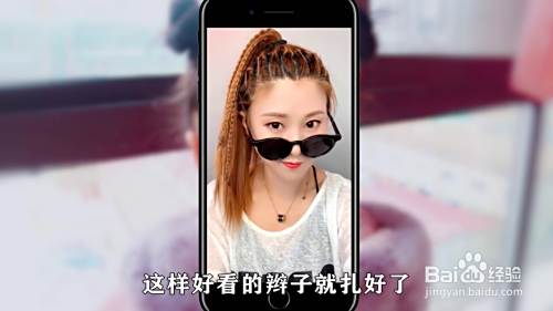 将头发用大皮筋固定,最后将后面的头发编成小辫子,戴上墨镜,这样好看的辫子就绑好了