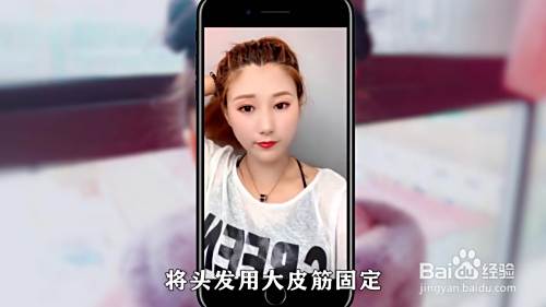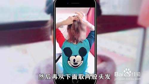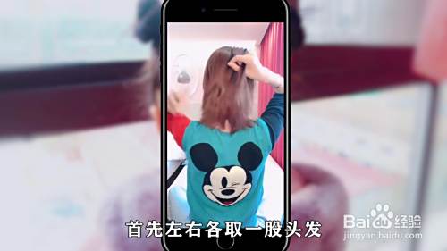 方法一,首先取一缕头发,掏进去穿过来,然后两边的头发也按照同样的方法操作