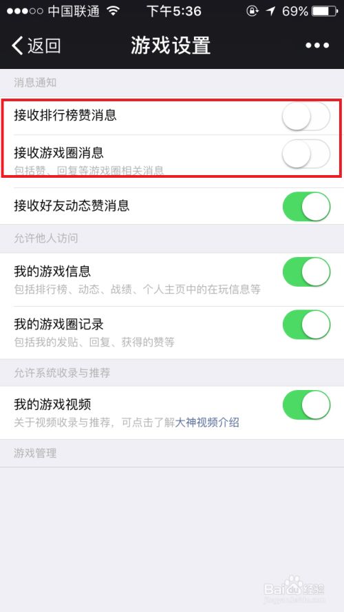 接下来然后将接受排行榜消息和接受游戏圈消息关闭。