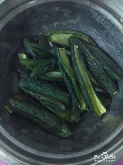 5.当然,有好些人喜欢用整根的黄瓜来晒的。那么这个时候,建议你选择黄瓜的时候,要选择那些较细的,而且是头带花的那种,而且黄瓜也尽量短才好,这样的小黄瓜荫晒起来,就易干,易保存。