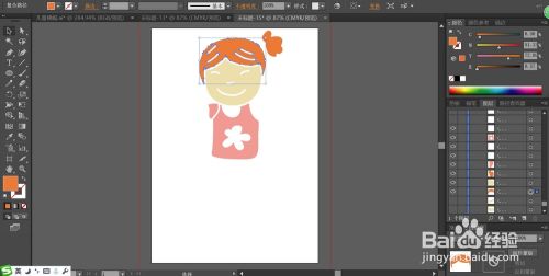 先用钢笔描绘出女孩的脸蛋路径,我们用淡黄色来填充,脸部的表情用白色的线条勾勒一下。