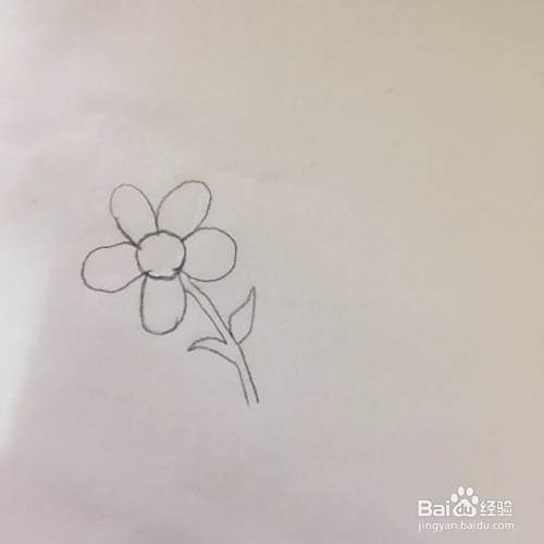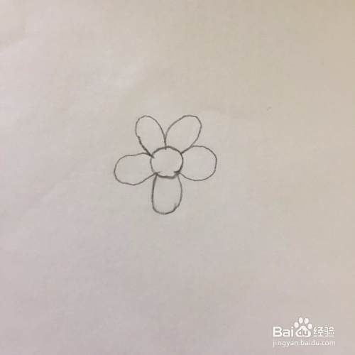 接着画出花的五个花瓣,如下图所示。画这部分的时候可以把它想象成在画一个小人的形状。