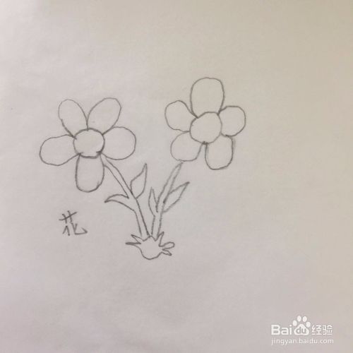 接着用同样的方法画出旁边的另一株花朵,如下图所示。画这部分的时候要参考左边的那株花朵,注意位置的左右相对对称。