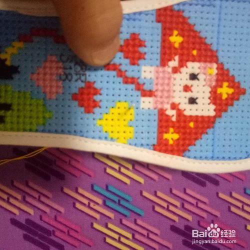 找到爱心的位置,针线从鞋垫底穿过