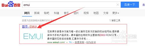 首先打开百度搜索“emui”,第一项便是!如下图所示: