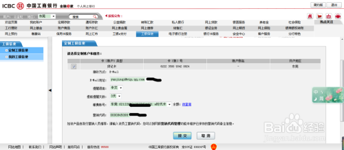 输入邮件地址,提醒语言,提前提醒天数,缴费账号,代码,点击提交