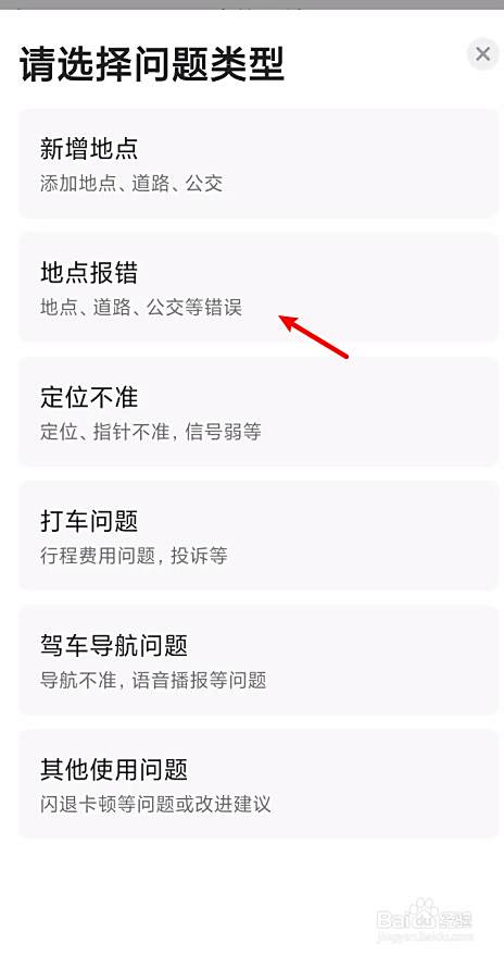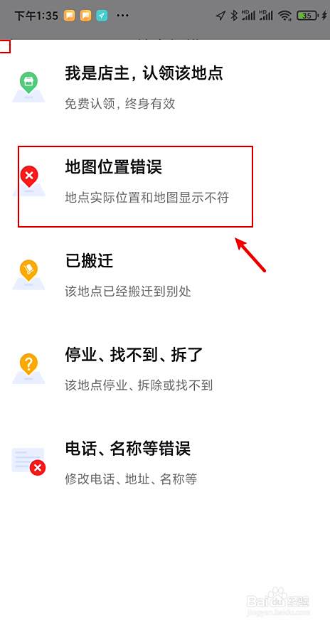 找到地名名称之后,这里依个人实际情况进行选择,如果自己是店长可以选择第一个选项。这里我们可以选择第二个选项地图位置错误;