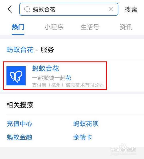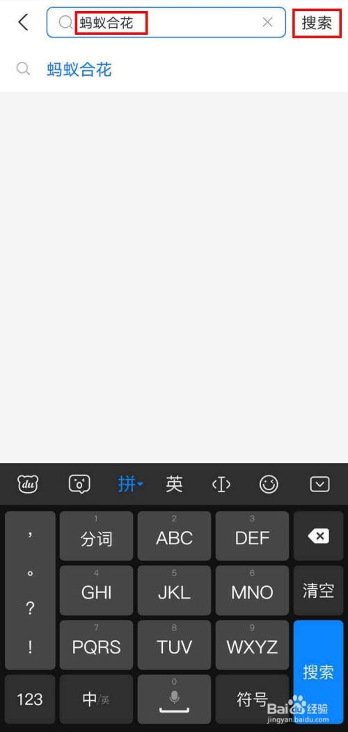 进入搜索页面,在搜索框输入蚂蚁合花,点击“搜索”;