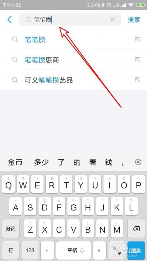 接下来在搜索框中输入笔笔攒关键词进行搜索