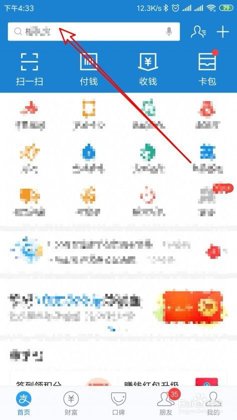 接着在打开的支付宝软件主界面,点击顶部的搜索框