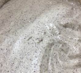 筛入混合好的糯米粉和黑米粉,这是刚刚筛入拍的照片