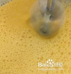 蛋黄加入玉米油和牛奶,电动打蛋器打30秒乳化