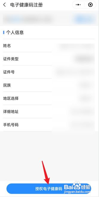 最后,填写个人信息,点击底部的授权电子健康码即可。