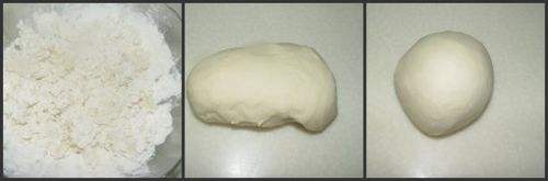 11、将沸水慢慢加入面粉中,边加入边搅拌。