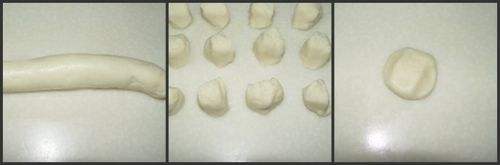 66、案板抹油,将一个小面剂放在抹了油的案板上。