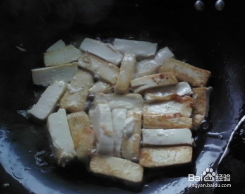 豆腐煎至2面金黄。