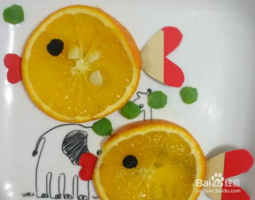 将橙子切成片,取两片使用,作为小鱼的身子。